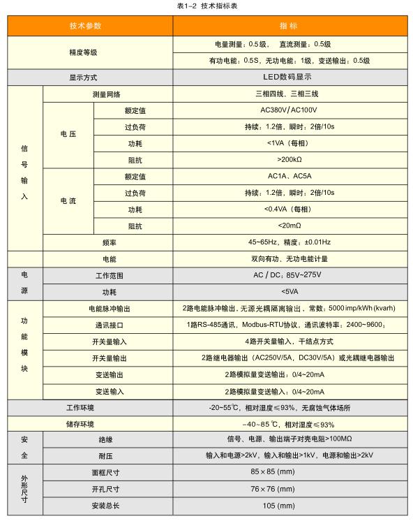 多功能電力監測儀表是一種具有可編程測量,綜合顯示三相電參量、電能計量、數字通訊功能于一體的智能化儀表。能夠完成電量測量、電能計量、數據顯示、采集及傳輸,可廣泛應用于變電站自動(dòng)化、配電自動(dòng)化、智能建筑、企業(yè)內部電能計量、管理、考核。測量精度為0.5S級,實(shí)現現場(chǎng)顯示和遠程RS-485數字接口通訊、采用Modbus-RTU通訊協(xié)議。