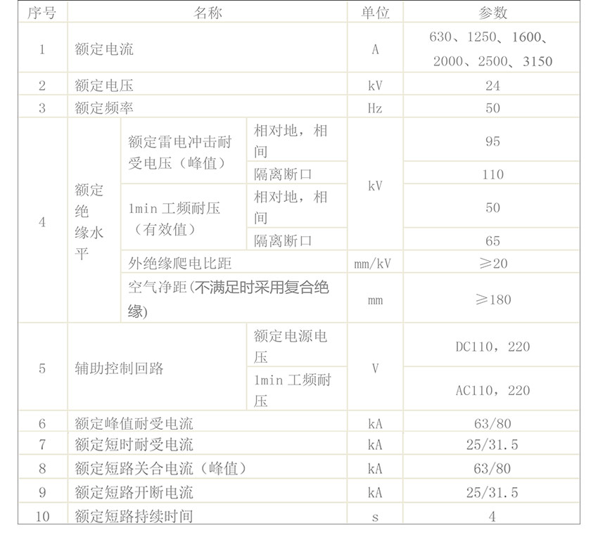 開(kāi)關(guān)柜額定參數見(jiàn)表1.